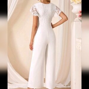 Women's V-Neck Elegant Ruffle Sleeve Lace Jumpsuit