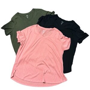 Women's V-Neck T-Shirt Trio - Pink, Black, and Green