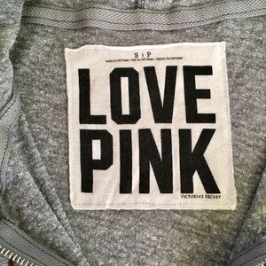 Gently worn full zip sweatshirt by Pink VS. Item has one flaw, small imperfection as seen in last image. Item has been reduced appropriately. This sweatshirt is super comfy and stretchy! Fits a small to medium size. Questions and offers welcomed! 😊