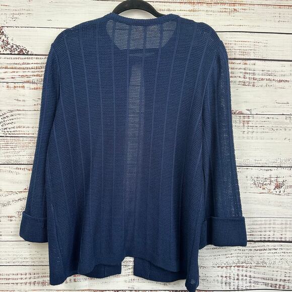 Women's VTG 70's James Kenrob Navy Blue Open Front One Button Mesh Cardigan 16