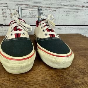 Women's Vintage Vans, Made in USA. They are in great vintage condition. Some normal yellowing to the white and soles. In great condition for age.