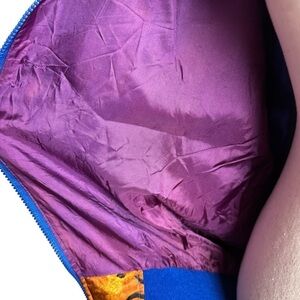 Alto Solo vintage artsy art to wear bomber jacket blue no size tag look at measurements