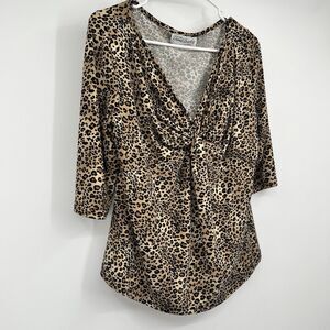 Womens VTG Animal Print Y2K Blouse L 3/4 Sleeves Vneck Cheetah Casual Rockabilly