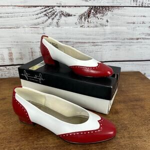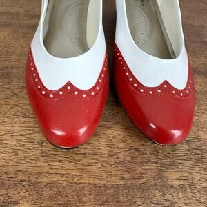 Womens VTG Soft Style Hushpuppies Red White Spectator Block Kitten Heel Pumps 7M