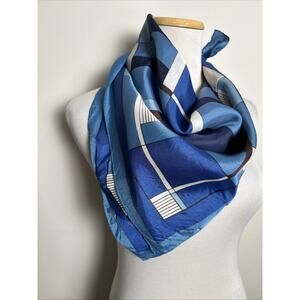 Womens VTG Square Scarf Water Repellent Acetate Made In Japan Blue Colorblock