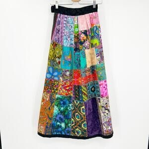 Womens VTG Vintage Artsy Boho Hippie Handmade Patchwork Floral Maxi Skirt