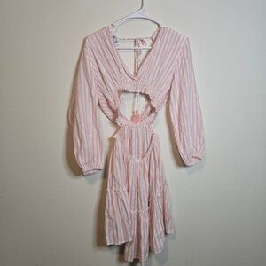 Women's Vacation Beach Pink Stripe Cut Out Exposed Mid Drift Flowy Dress Small