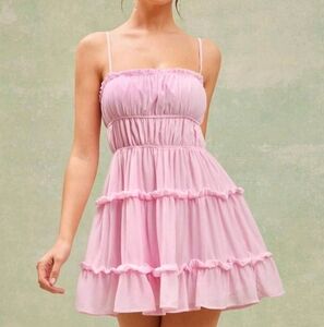 Women's Vacation Solid Color Pleated Ruffle Hem Spaghetti Strap Dress