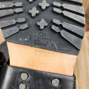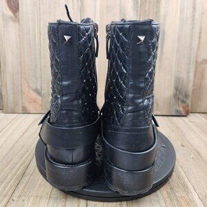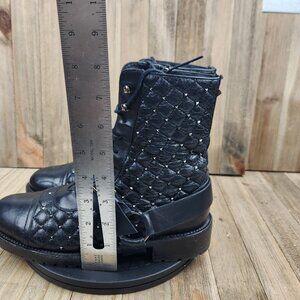 Womens Valentino Garavani Size 8 Eu 38 Leather Quilted Rock Stud Biker Boots