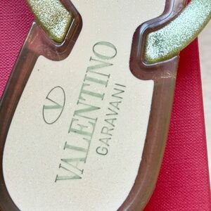 These women’s rockstud Valentino jelly flip-flops are in immaculate condition and only worn a couple of times. They are a size 39 or 8 in US. They do run a tiny bit small but fit a size 8. These come with the original box, tissue paper, and envelopes.