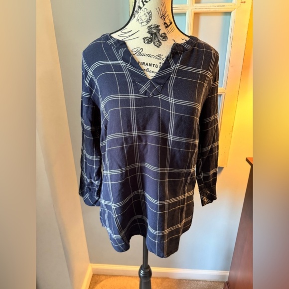 Women’s Van Heusen Navy and White Plaid Tunic Size Small