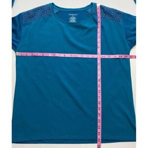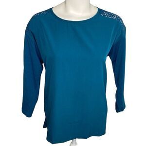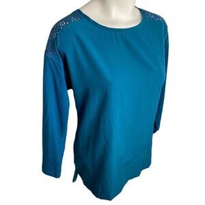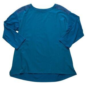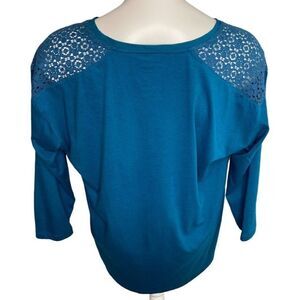 Womens Van Heusen Dark Teal 3/4 Sleeve Lace Shoulder Top sz Medium