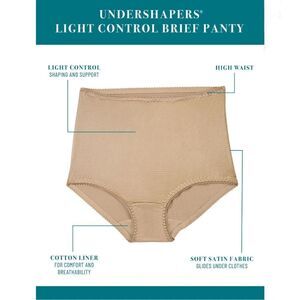 Features: Light control shaping and support for a flawless, smooth look; soft satin fabric glides underneath your clothes; excellent fit that stays in place all day; high waist, full rear coverage for an all over smooth look; cotton liner for breathability; also available in hi-cut briefs