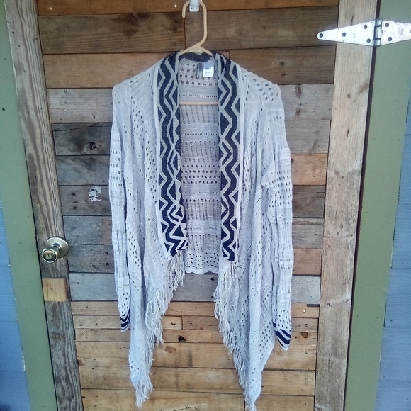 Very pretty Women's fringed open cardigan with an asymmetrical hem in good condition.