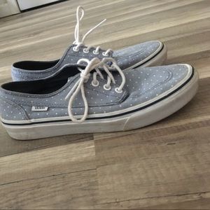 Blue and white polka dot women's vans/ worn 3 times/ small knicks in them/ size 8