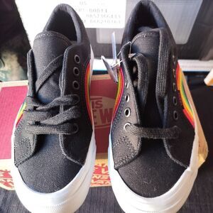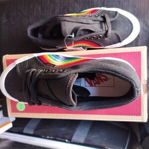 Women's Vans, size 5.5, NWT and box, black and rainbow embroidered