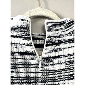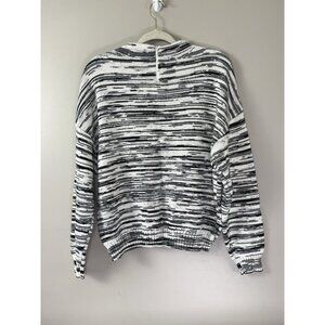 Womens Variegated Grandpa Sweater L Black White Oversized Chunky Knit Minimalist