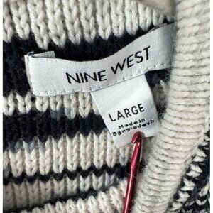 Nine West oversized variegated crewneck sweater in a timeless black, white, and gray knit, channeling cozy grandpa-core and vintage-inspired minimalism. The chunky knit texture gives it a relaxed, slouchy fit perfect for layering with denim or skirts for an effortlessly chic look. Made in Bangladesh. Material content is cotton and acrylic. Flat measurements: pit to pit 23 inches, length 25 inches. In excellent condition with soft, comfortable wear that aligns with current cozy aesthetic trends.