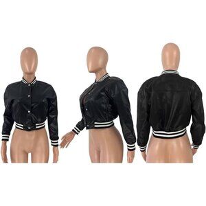 Women's Varsity Jacket Long Sleeve Button Down Bomber Jacket Streetwear B-Pink