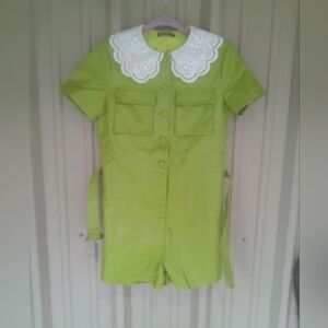 Women's Vegan Faux Leather Green Romper Size Small Christmas Elf Lace Collar
