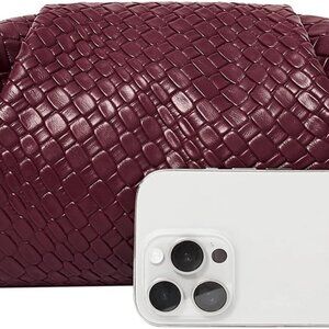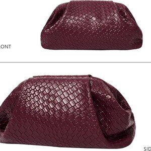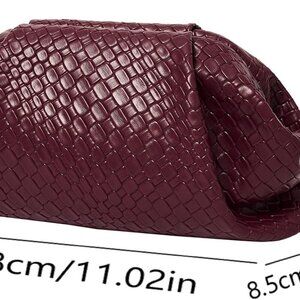 Size: 12.02 IN" x 3.34 IN" x 5.9 IN" Design: dumpling cloud shape, ruched pattern, kiss lock closure, equiped with a removable chian, providing versatility used as clutch, tote, crossbody purse or shoulder bag. Great for wedding, travel, party, formal events or every occasion.