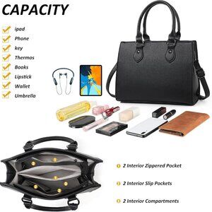 Features: Made from high-quality, waterproof PU leather that’s easy to wipe clean. This tote features a large main compartment with a zippered closure, multiple interior pockets, and a back zippered pocket — perfect for carrying your tablet, keys, wallet, makeup, and more. The adjustable, detachable shoulder strap makes it easy to wear as a shoulder bag, crossbody, or carry as a tote.