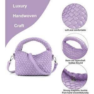 Women's Vegan Woven Crossbody Bag Small Tote with Detachable Strap