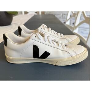 Women’s Veja Esplar Low Leather Sneakers White Black Logo – Size 7 US / 38 EU