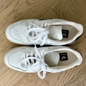 Elevate your casual look with Veja's cream and black sneakers. Stylish and comfortable for everyday wear.