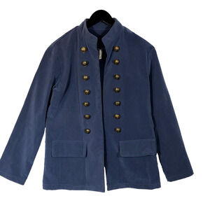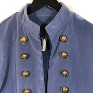 Womens Velour Military Style Jacket Size Blue Gold Buttons Size Small Noracora