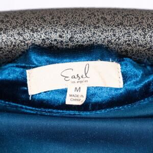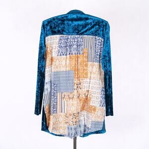 Pre-Owned: Women's Velvety Velour Embroidered Tunic Top MEDIUM Teal Floral Boho Artsy Fairy Mixed Media Western Patchwork; Excellent, Pre-Owned Condition; Polyester, Nylon, Spandex.