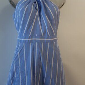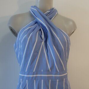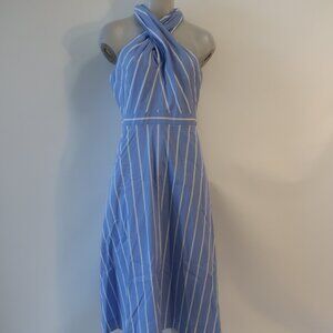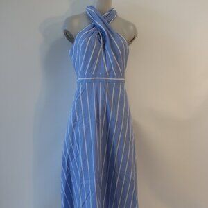 Womens Veronica Beard Baylee Blue White Striped Poplin Halter Midi Dress 8