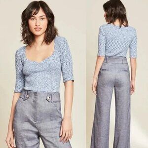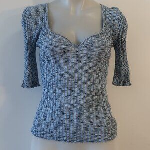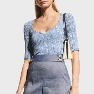Womens Veronica Beard Lipa Space-Dyed Pullover Blue Multi Ribbed Designer Top M