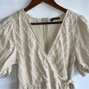 The Very J Women's Small Light Tan Short Sleeve Wrap Dress is a stylish and versatile piece perfect for casual occasions during the summer and spring seasons. This dress features a flattering V-neckline, puff sleeves, and a fit and flare style that is both comfortable and chic. The short length and collarless design add to its trendy appeal, making it a must-have for any fashion-forward woman's wardrobe. Made in China by the brand Very J, this dress is a great addition to any collection of women's clothing.