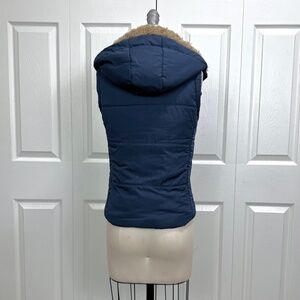 Women’s Vest - Hooded Poofy Faux Fur Collar Zip Up Vest - Retro Vintage Inspired