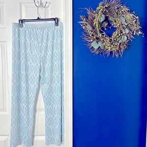 Women’s Via Ritina Blue & White Polyester & Spandex Lattice Print Pants Size XL
