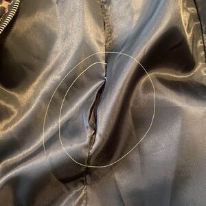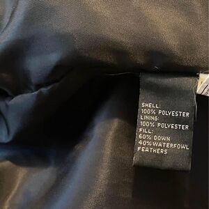 In great pre-owned condition other than a rip in the inside lining which reflects in the pricing. 60% down filled, zippered pockets and zippered detail on the sleeves, high collar.