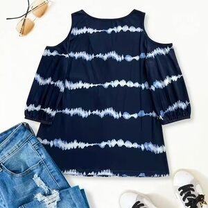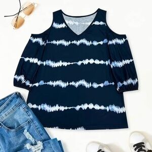 Women’s Vibrant Color Block Striped Cold Shoulder V-Neck Knit Top - Size L - NWT