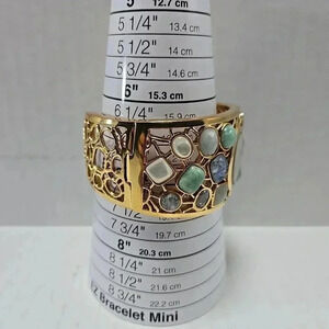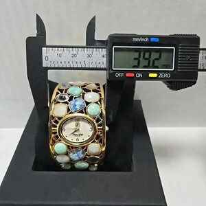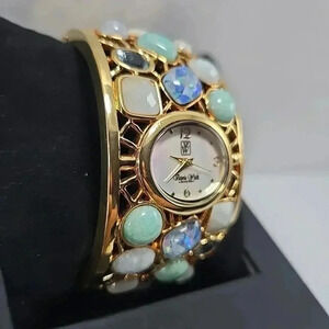 Womens Victoria Wieck Gold Tone Gemstones Topaz Opal Moonstone Watch Cuff Bangle