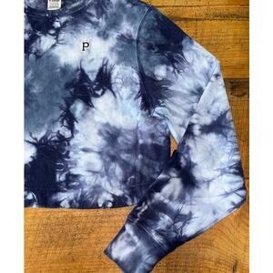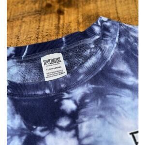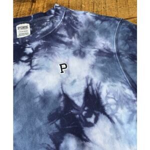 This cropped sweatshirt is in excellent pre-loved condition! No rips or stains! This is a blue and white tie dyed sweatshirt from Victoria's Secret. It is medium weight and has a "P" logo on the front and the sleeve. Measurements are in the photos. Women's size small.