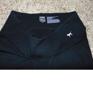Womens Victorias Secret PINK Yoga Pants Medium Black Cropped Pink Lace Bottoms