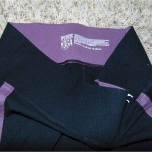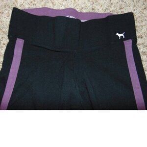 Womens Victorias Secret PINK Yoga Pants Medium Black Purple Crop Strappy Legs