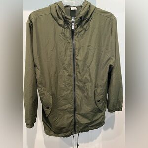 Women’s oversized Victoria’s Secret Pink dark army green with black lettering hooded utility/trench coat. Size XS. Lined with a mesh jersey material. Lightweight. Excellent condition