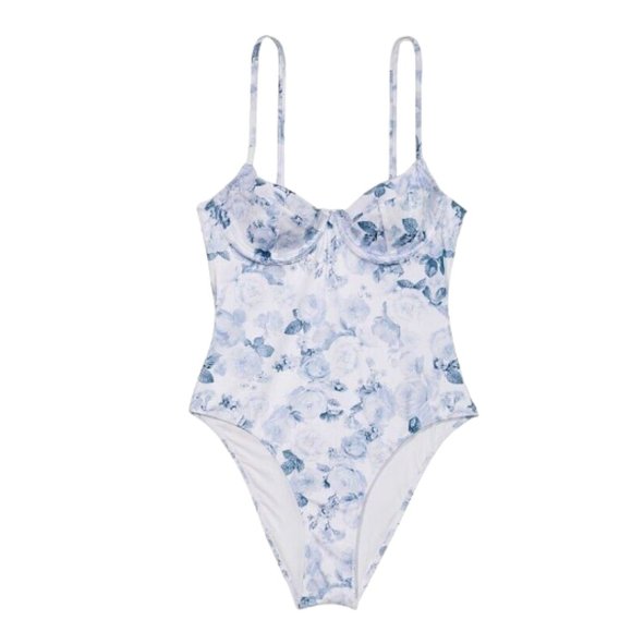 Women's Victoria's Secret Swim Wicked Push Up Blue & White Floral Swimsuit MED