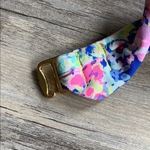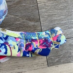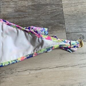 Good condition - Women's Victoria’s Secret Swimsuit Strapless Bikini Top With Tie Straps. Slight discoloration on inside from use (as pictured). Strapless or comes with tie straps you can hook onto top. Colors: blue, pink, green, purple, and gold. Size: M.