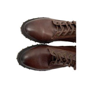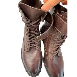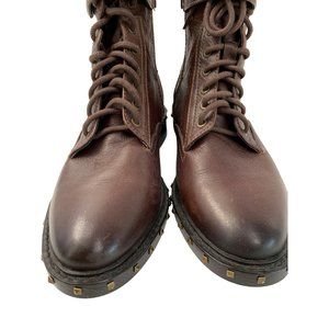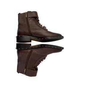 Womens Vince Camuto 6.5 Zip Leather Lace Up Booties Combat Brown Stud 6571 EUC
