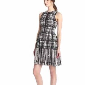 Womens Vince Camuto Black White Sleeveless Fit and Flare Scuba Dress 10