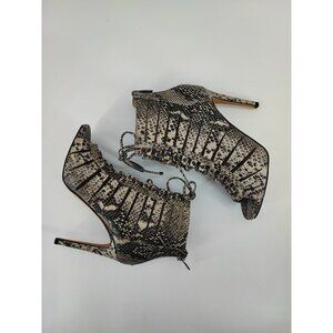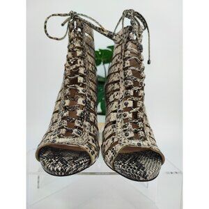 Women's Vince Camuto Fiona Open Toe Lace Up Front Beige Heeled Booties Size 7