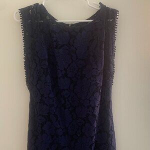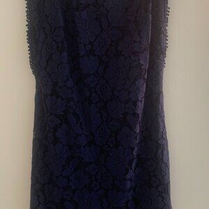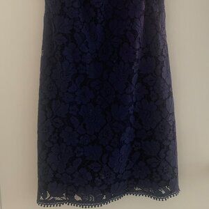 Elegant Blue Lace Midi Dress – Size 6