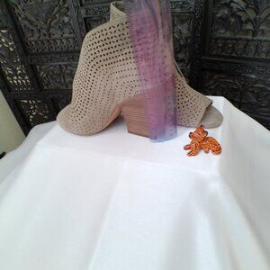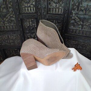 Women's Vince Camuto Gray Suede Open Toe Booties, Size 7M, 3 1/2" heel, lightly worn